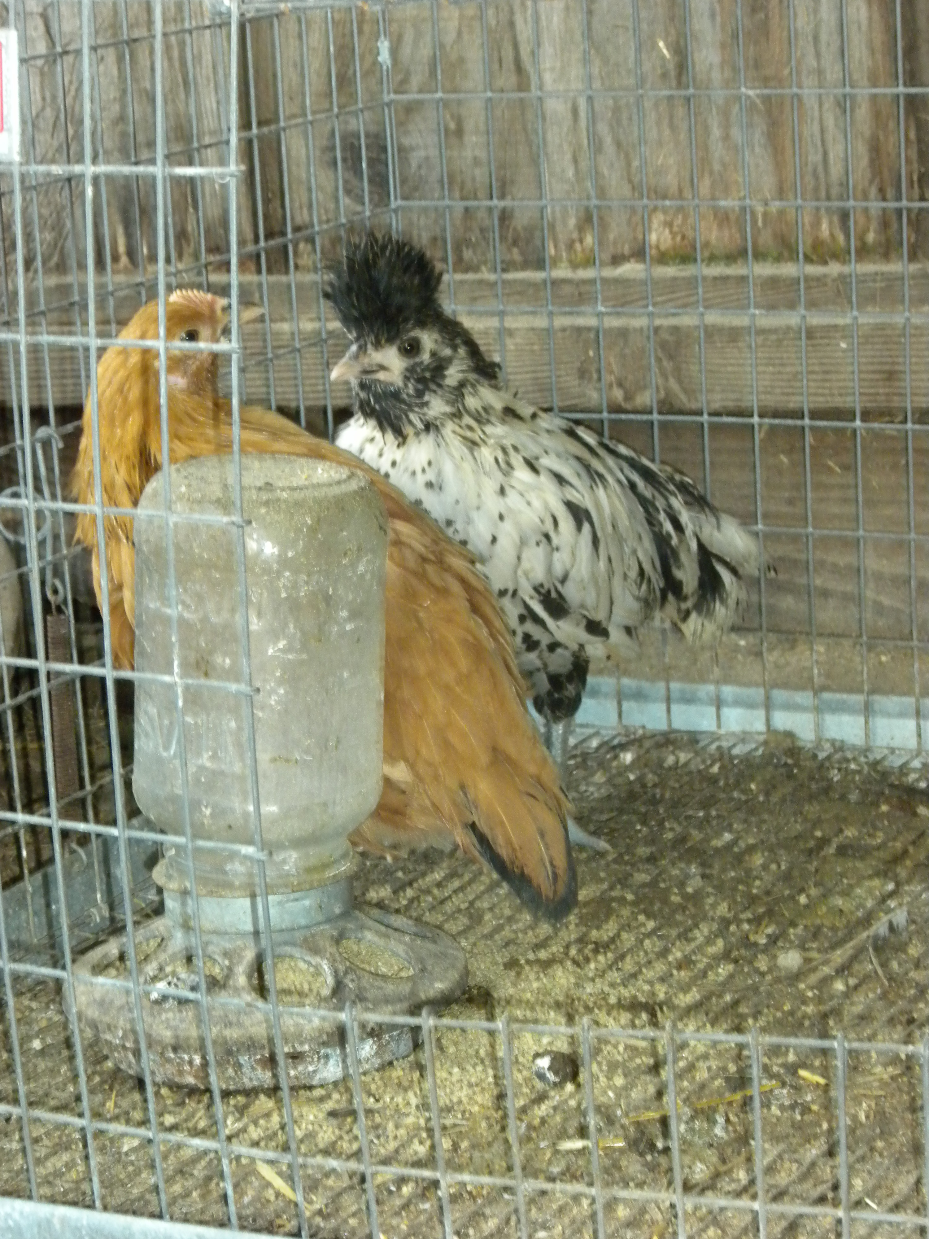 Last week I put the chicks outside into the big coop. As a transition, I kept them locked inside their cage-inside-the-coop for two days. A few days ago, I opened the door to the cage, but even though they were free to come out and explore, the chicks stayed close to their known world. Hovering close to water and feed.
